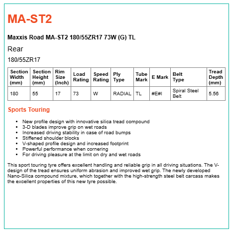 This sport touring tyre offers excellent handling and reliable grip in all driving situations. The V-design of the tread ensures uniform abrasion and improved wet grip. The newly developed Nano-Silica compound mixture, which together with the high-strength steel belt carcass makes the excellent properties of this new tyre possible.