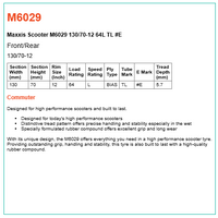 With its unique design, the M6029 offers everything you need in a high performance scooter tyre. Providing outstanding grip, handling and stability, this tyre is also built to last with a high-quality rubber compound.