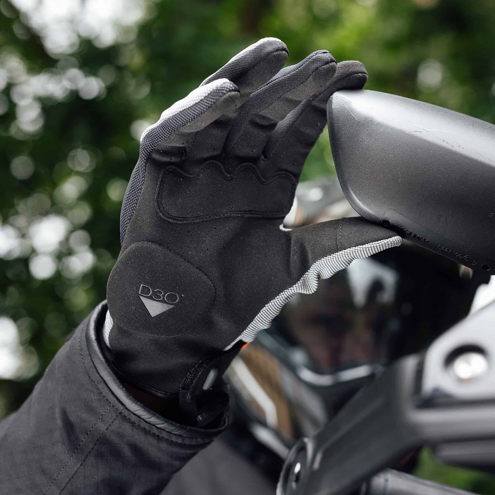 Berea is a D3O® protected trail glove from Merlin. Available in two colourways, black and grey, Berea also features stretch textile panels across the fingers, wrist and thumb for maximum flexibility needed for an adventure or trail ride. With leather wrapped over D3O's impact protection sheet foam on the knuckles there is excellent rider protection. Riders then benefit from the soft and supple textile palm which fits close to the skin as expected from a spring/summer style, without waterproofing.