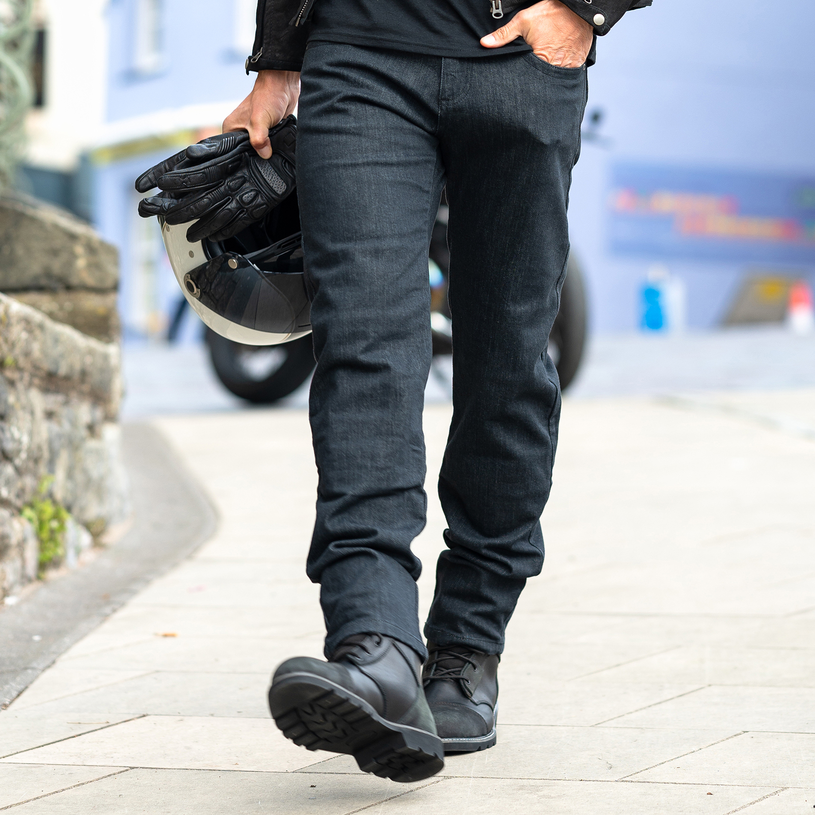 Providing enhanced riding protection in a single layer of denim, the Merlin Dunford jeans are constructed from a cotton and Cordura® blend, making for a highly abrasion-resistant jean which achieves an 'AA' CE rating. Additionally backed by D3O® Ghost armour to the hips and knees, our range of single-layer riding jeans are our most innovative yet. A reflective turn-up at the ankle works to enhance visibility at night, and a connection hoop allows the easy attachment of Merlin jackets. Available in black only in waist sizes 30-40 with a choice of two leg lengths ? regular (32in) and short (30in).