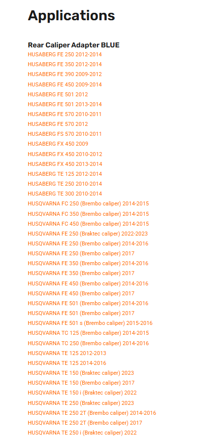 Front adapters redesigned for oversize brake discs. Available for all popular MX and Enduro motorcycles.
