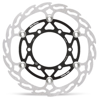 The Moto-Master 260mm Flame rotors are the perfect solution for MX riders looking for more stopping power. Full-floating and cut with the innovative Flame design, they offer a performance gain up to 35% over stock, along with up to 20% in weight savings. The new 270mm rotor features a billet CNC machined Aircraft aluminium, black anodized inner ring, ultra-light stainless steel floater setup and a precision  grinded, premium stainless steel outer ring.
