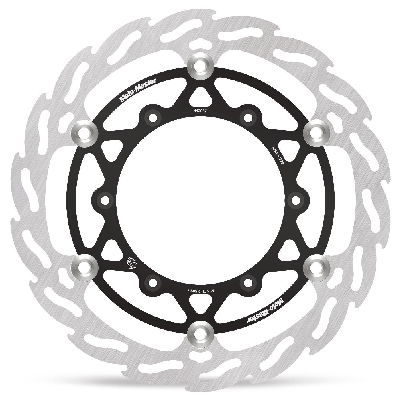 The Moto-Master 270mm oversize Flame rotors are the perfect solution for MX riders looking for more stopping power. Full-floating and cut with the innovative Flame design, they offer a performance gain up to 35% over stock, along with up to 20% in weight savings. The new 270mm rotor features a billet CNC machined Aircraft aluminium, black anodized inner ring, ultra-light stainless steel floater setup and a precision  grinded, premium stainless steel outer ring.