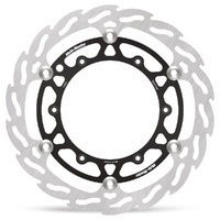 The Moto-Master 270mm oversize Flame rotors are the perfect solution for MX riders looking for more stopping power. Full-floating and cut with the innovative Flame design, they offer a performance gain up to 35% over stock, along with up to 20% in weight savings. The new 270mm rotor features a billet CNC machined Aircraft aluminium, black anodized inner ring, ultra-light stainless steel floater setup and a precision  grinded, premium stainless steel outer ring.