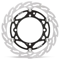 The Moto-Master 270mm oversize Flame rotors are the perfect solution for MX riders looking for more stopping power. Full-floating and cut with the innovative Flame design, they offer a performance gain up to 35% over stock, along with up to 20% in weight savings. The new 270mm rotor features a billet CNC machined Aircraft aluminium, black anodized inner ring, ultra-light stainless steel floater setup and a precision  grinded, premium stainless steel outer ring.
