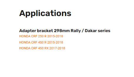 Front adapters redesigned for oversize brake discs. Available for all popular MX and Enduro motorcycles.