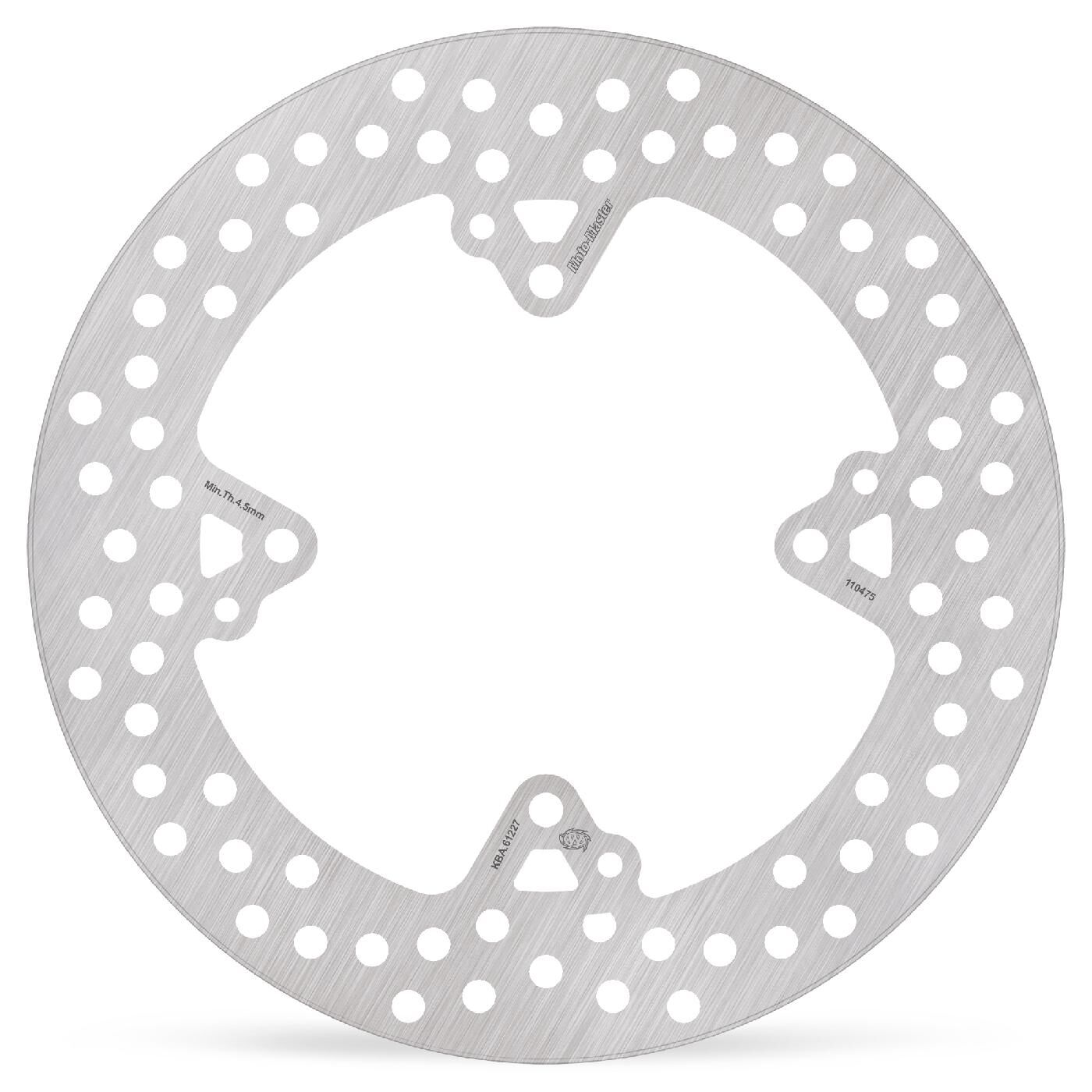 - Exact size and positioning of the venting holes ensures equal heat dispersion under high thermal stress while the brake pad contact area is cleaned evenly.