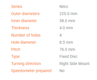 NITRO discs allow for high performance braking while exhibiting extremely little wear.