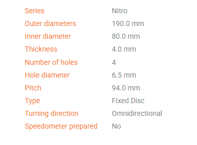 NITRO discs allow for high performance braking while exhibiting extremely little wear.