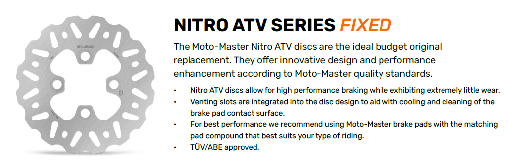 Moto-Master Nitro Discs offer innovative design and performance enhancement according to Moto-Master quality standards. Made from specially hardened premium quality stainless steel.
