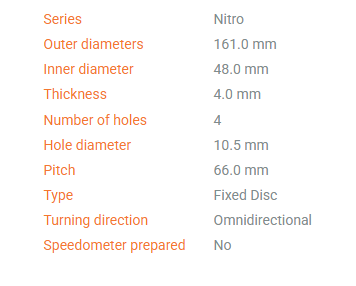 NITRO discs allow for high performance braking while exhibiting extremely little wear.