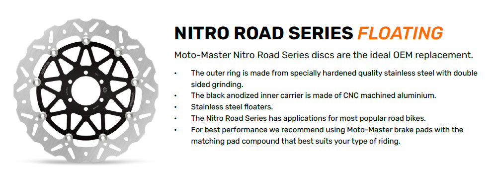 Moto-Master Nitro Discs offer innovative design and performance enhancement according to Moto-Master quality standards. Made from specially hardened premium quality stainless steel.