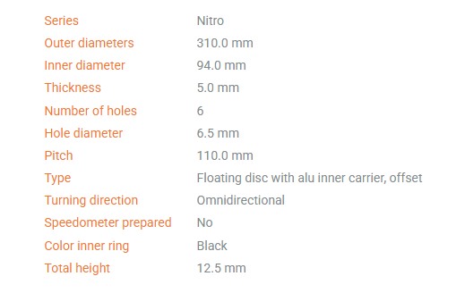 NITRO discs allow for high performance braking while exhibiting extremely little wear.