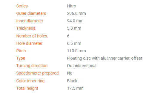 NITRO discs allow for high performance braking while exhibiting extremely little wear.