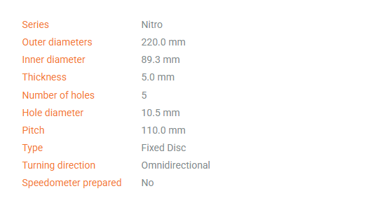 NITRO discs allow for high performance braking while exhibiting extremely little wear.