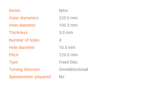 NITRO discs allow for high performance braking while exhibiting extremely little wear.