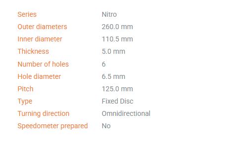 NITRO discs allow for high performance braking while exhibiting extremely little wear.