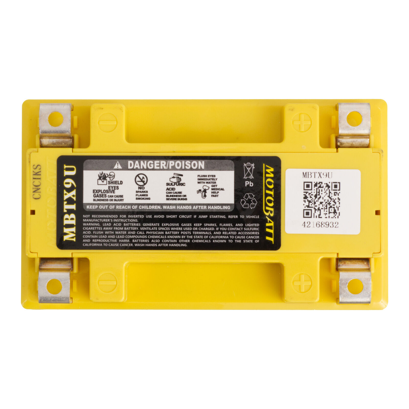 Motobatt batteries are manufactured from Absorbed Glass Mat (AGM) this design has revolutionised the motorcycle ATV lawnmower and small engine industry. QuadFlex provides a unique four-terminal design with two positives two negatives along with height spacers that permit an almost universal fit. All Motobatt AGM Batteries are maintenance-free non-hazardous non-spill charged and ready to install directly out of the box.