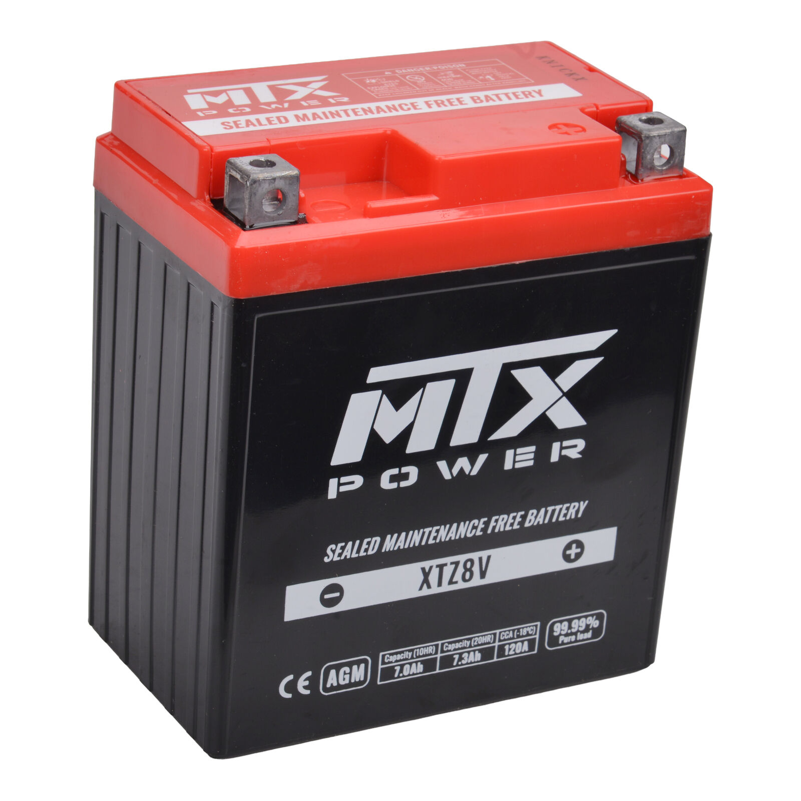 MTX Power's high-performance AGM battery boasts an install and go design. The use of the latest developed absorbed glass mat (AGM) material significantly improves the CCA and life-cycle of the battery. The new straight-through welding technology effectively reduces the internal resistance so the battery outputs much higher cranking power.