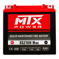 MTX Power's high-performance AGM battery boasts an install and go design. The use of the latest developed absorbed glass mat (AGM) material significantly improves the CCA and life-cycle of the battery. The new straight-through welding technology effectively reduces the internal resistance so the battery outputs much higher cranking power.