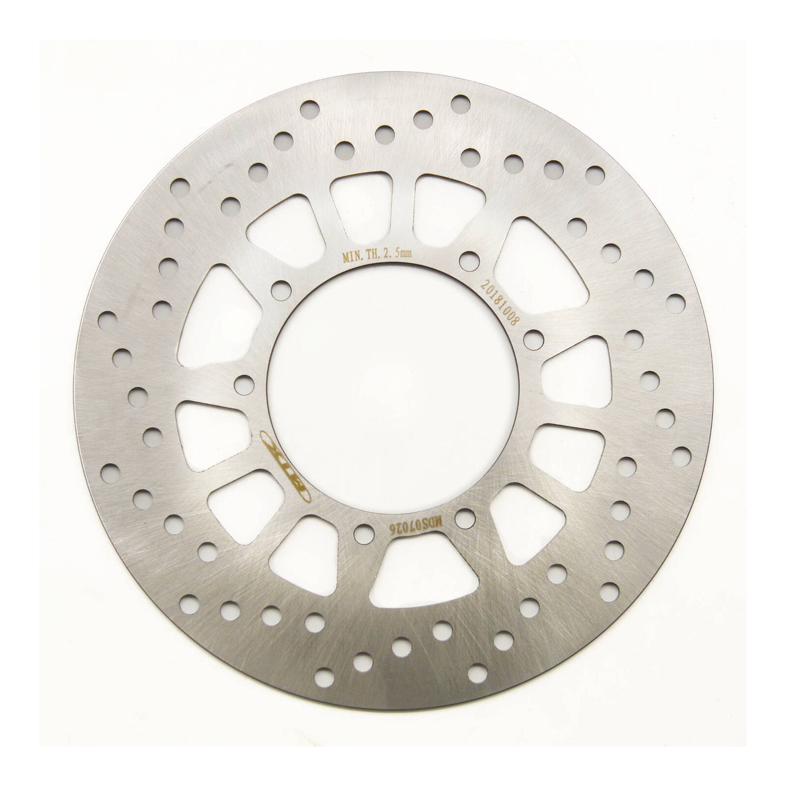 MTX solid discs are constructed using one complete segment of Japanese SUS 420 stainless steel then heat-treated to HRC 36+-2. Lightening and drill hole patterns are as per OEM designs to improve braking performance and reduce the temperature of the disc.