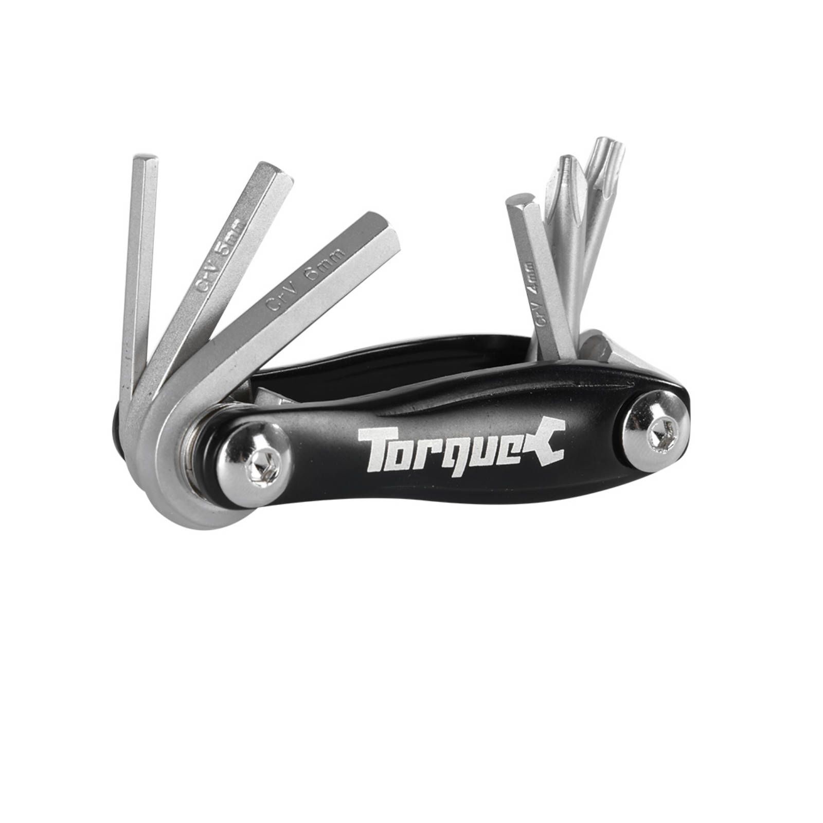 The Torque Compact 6 Folding Multi-Tool includes 6 chrome vanadium tools. It has laser-etched graphics and lightweight 6061 aluminium sides.