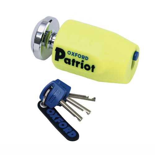 The OXOF40 Oxford Patriot disc lock has a small compact design making it easy to carry on a bike, in a bag or even a pocket. It comes equipped with a 14mm shackle pin and is available in either a short or long shackle versions.