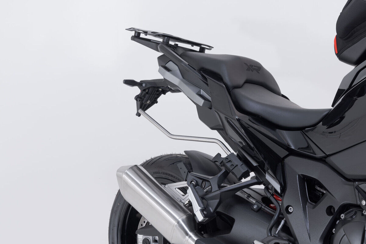 Developed specifically for sporty motorcycles, the saddlebags have a minimal effect on driving characteristics. When travelling without luggage, the removable support arms can be detached with a simple step, leaving only inconspicuous holders behind on the bike.