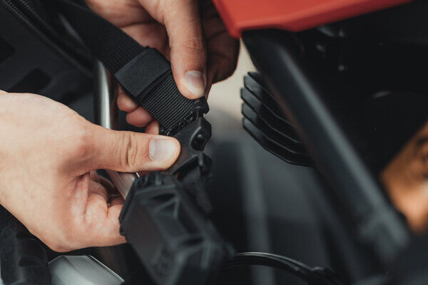 - A powerful Velcro strap additionally secures the left and right saddlebags and offsets the weight of the luggage