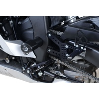 Designed to be easily installed. Powdercoated in black with crisp white R&G graphics on the peg and levers, giving these rearsets a very sharp look. The footrests are specially textured to ensure maximum grip in even the most tricky situations.