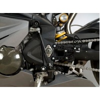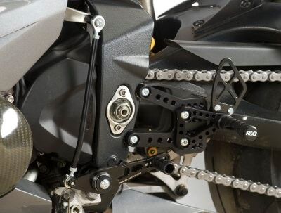 Maximise your potential, tune your machine to your exact requirements. R&G Racing Triumph Daytona 675 ('06-'12) Adjustable Rearsets are milled out of lightweight aluminium for high strength and durability. This R&G adjustable rearsets provide the rider with the ability to select their shift pattern, a race shift-pattern (1 up - 5 down) or road shift-pattern (5up - 1 up), ideal for track or race riding. Our rearsets provide large adjustments and exact positioning to suit every rider (11 positions). Designed to be easily installed. Powdercoated in black with crisp white R&G graphics on the peg and levers, giving these rearsets a very sharp look. The footrests are specially textured to ensure maximum grip in even the most tricky situations. Full fitting kit, including instructions, enclosed.