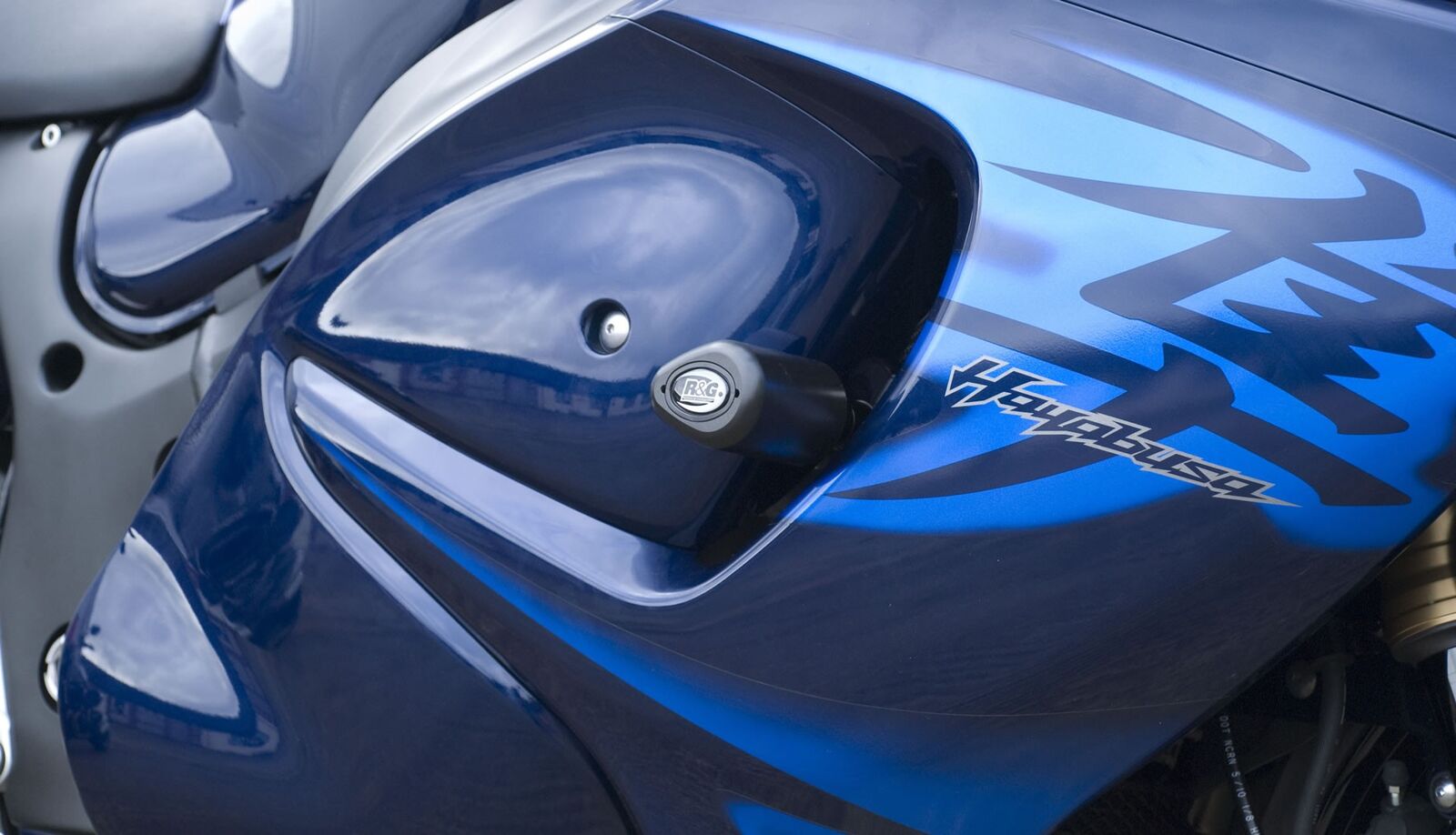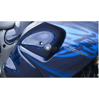 These crash protectors have been developed as a non-drill crash protector kit featuring our stylish, aerodynamic Aero Bobbins and are available in black utilizing stainless steel mounting blocks and brackets for strength powder coated black for a superb finish. Suitable for the Suzuki GSXR1300R Hayabusa ('08-'20)