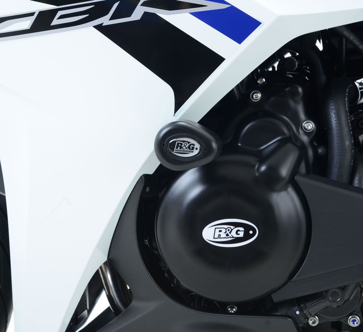 Please note this is a pre order. R&G Aero Crash Protectors feature our stylish, aerodynamic Aero Bobbins and are available in Black. Suitable for the Honda CBR500R '16-'18 models. Offering core motorcycle protection, keeping the frame, engine and other critical components off the ground in the event of a crash or slide.