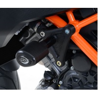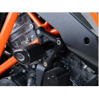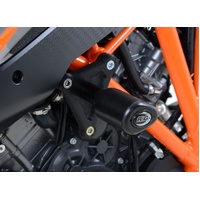 R&G Aero Crash Protectors feature our stylish, aerodynamic Aero Bobbins and are available in Black. Suitable for the KTM 1290 Superduke GT '16- '24 models. Offering core motorcycle protection, keeping the frame, engine and other critical components off the ground in the event of a crash or slide. Pictured with 3D printed blocks, actual blocks will be black anodized aluminium.