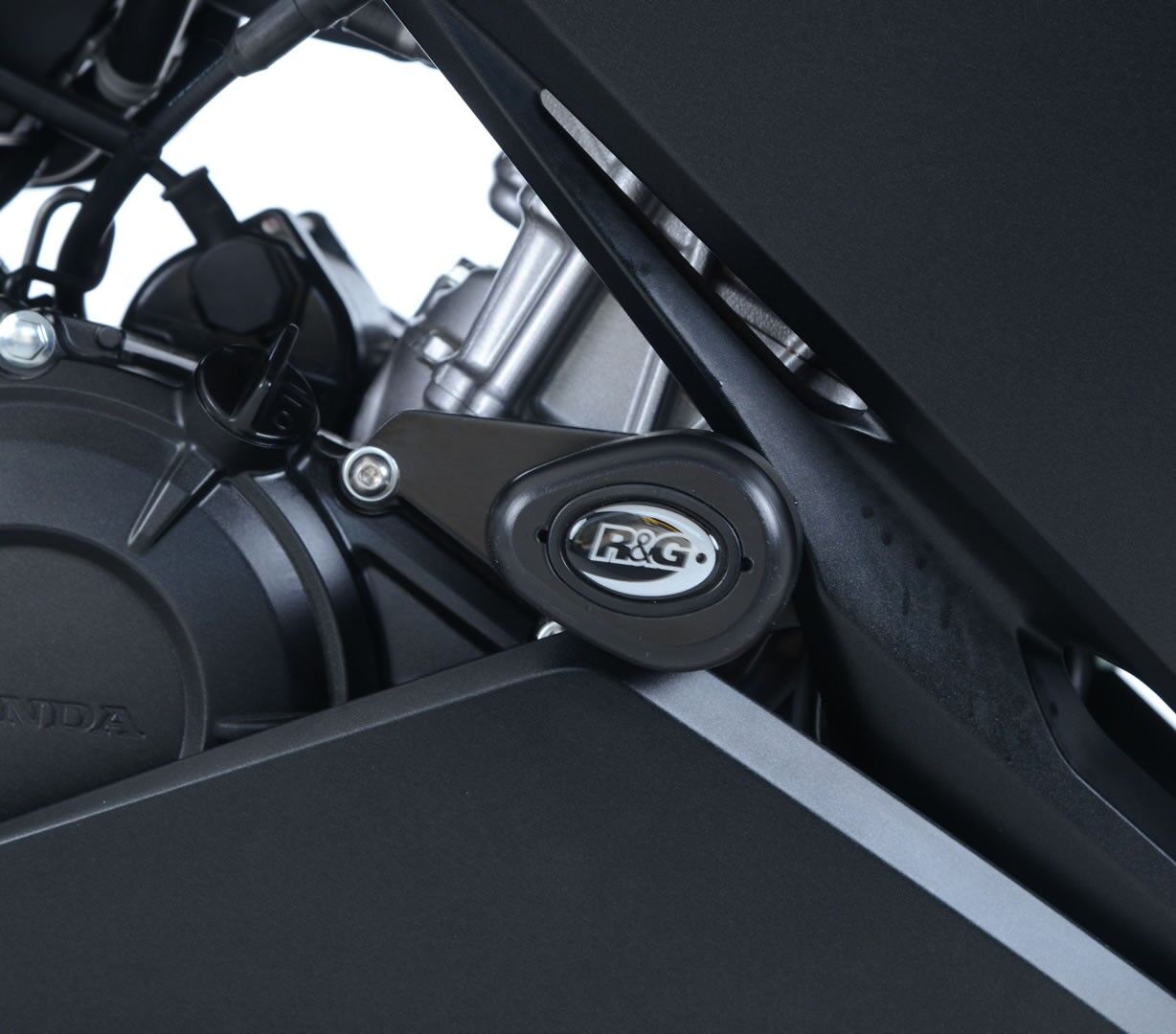 R&G Aero Crash Protectors feature our stylish, aerodynamic Aero Bobbins and are available in Black or White options. Suitable for the Crash Protectors - Aero Style for Honda CBR250RR '17- models. R&G Crash Protectors offer core motorcycle protection, keeping the frame, engine and other critical components off the ground in the event of a crash, drop or slide. The "Race Kit" has lower profile protectors than the standard crash protector as such is designed to protect the core of the motorcycle, engine and frame whilst not offering as much protection to the fairing panels (as a standard kit).