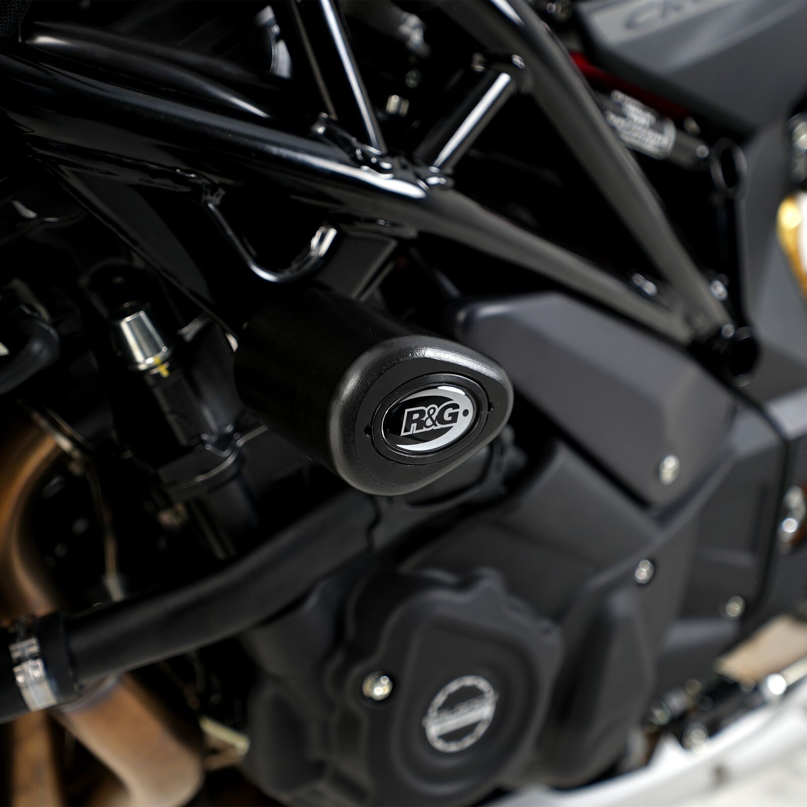 R&G Aero Crash Protectors feature our stylish, aerodynamic Aero Bobbins and are available in Black or White options. Suitable for the MV Agusta Brutale 1000 '20-, Brutale 1000RS '24-model. R&G Crash Protectors offer core motorcycle protection, keeping the frame, engine, fairing and other critical components off the ground in the event of a crash, drop or slide.