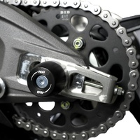 The R&G swingarm protectors provide protection for vulnerable rear end components in the event of a crash, drop or slide. Replaceable High-Density Polyethylene (HDPE) bobbins are used for superior impact and abrasion protection that helps slow the motorcycle to a smooth, controlled stop. This essential protector will keep valuable components off the ground to prevent some seriously expensive repairs after a fall. Installation is simple with no permanent modification to the bike needed.