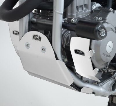 Protect the underside of your bike from damage and road debris with an R&G Bash Plate. Made from 3mm aluminium and powder coated silver for durability. This Bash Plate is compatible with the Honda CRF250L '13- and Honda CRF250M '13-. Easy to install utilising existing mounts. *PLEASE NOTE: The Engine Case Guard (ECG0001 and ECG0002) left and right hand sides for the Honda CRF250L are NOT included with this Bashplate.