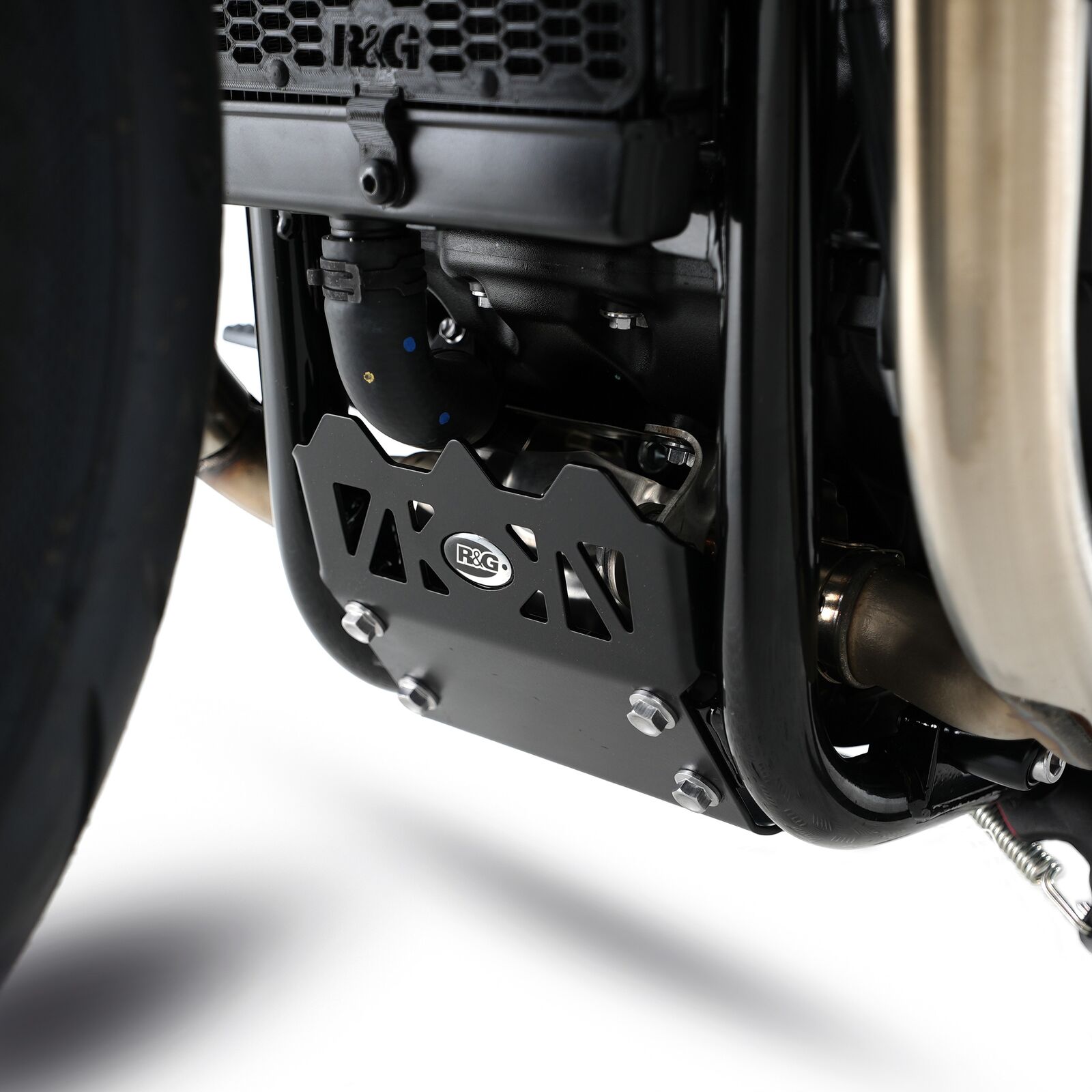 Protect the underside of your bike from damage and road debris with an R&G Bash Plate. Made from 3mm aluminium and powder coated black to match the frame and for durability.