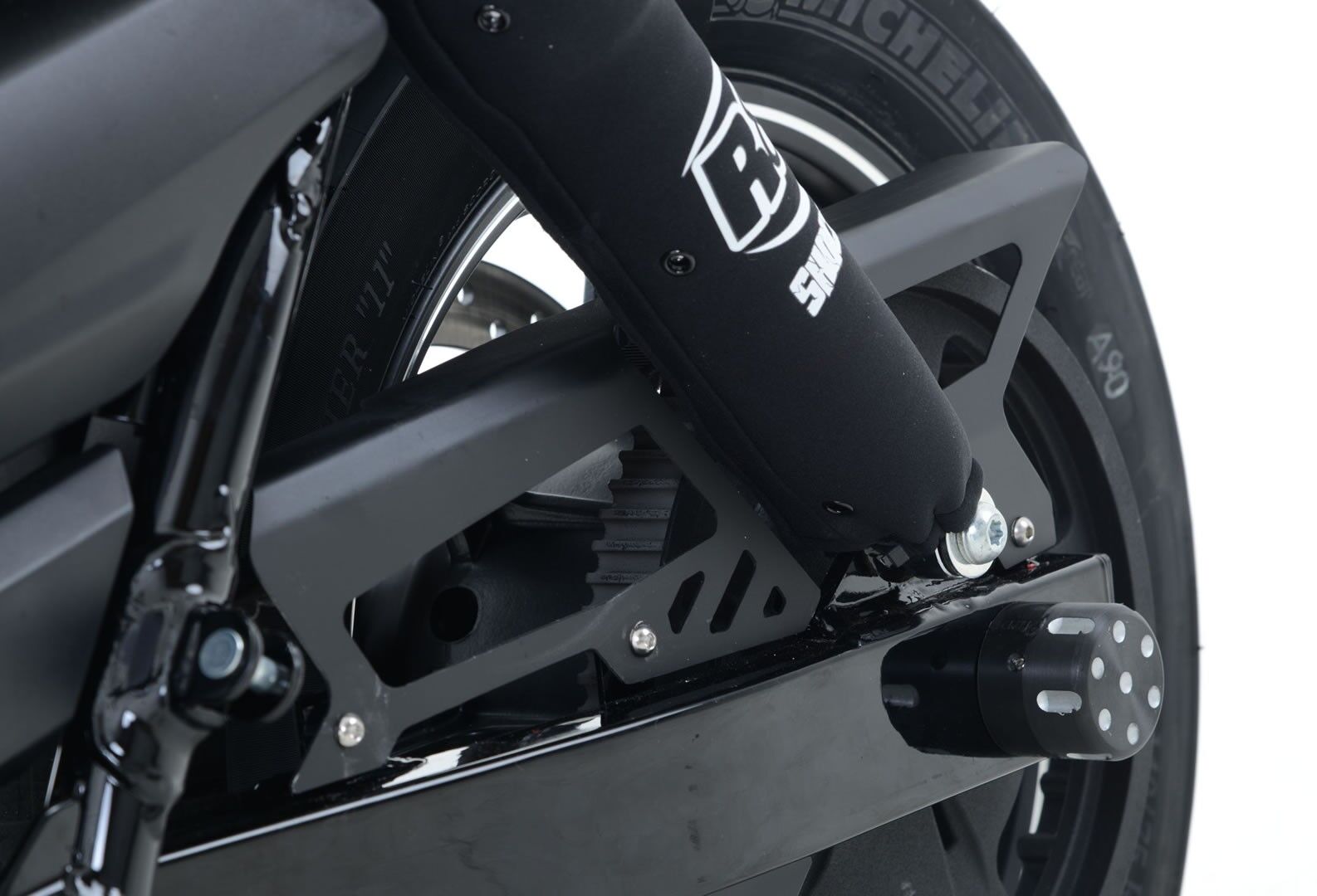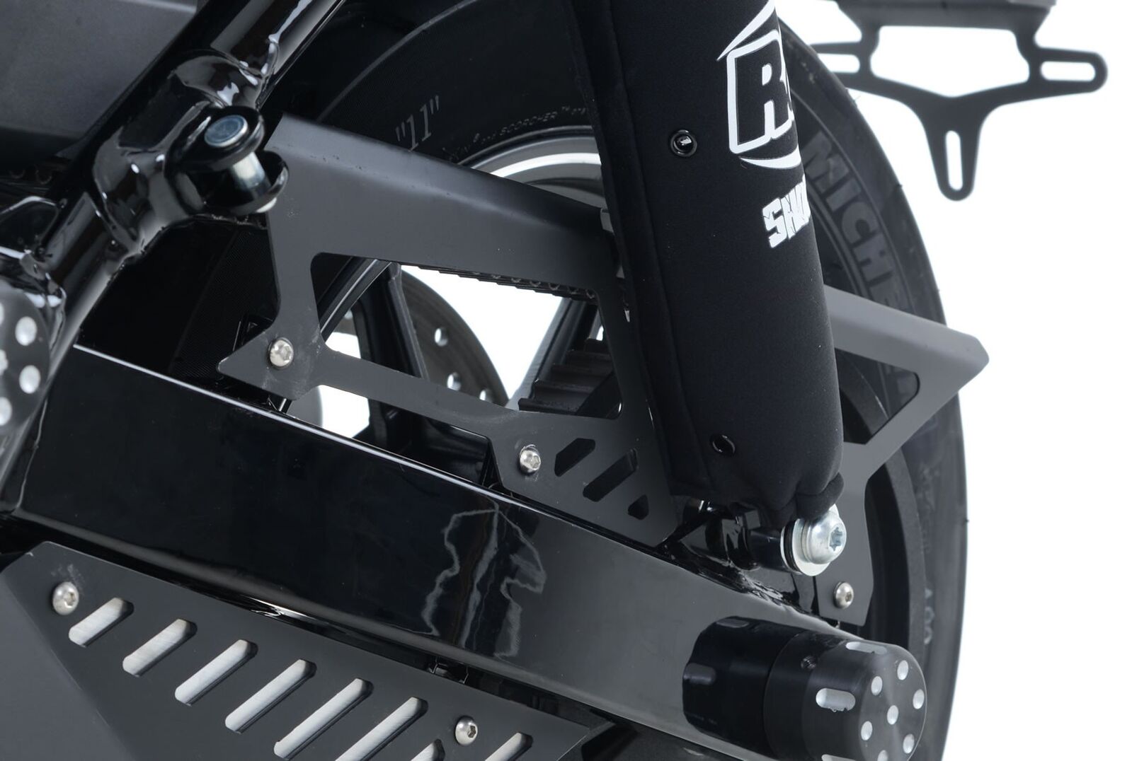 This R&G Belt Guard for the Harley Davidson Street 500/750 series comes in two pieces an upper and lower, this - the upper piece, protects the upper portion of the belt offering complete coverage from near the swingarm pivot point to past the rear sprocket. Ensuring the belt is fully protected from road debris as well as preventing material licking up off the belt and onto the tyres. Made from aluminium, this Belt Guard is easy to install using existing mounts. Its finished in a two-tone Aluminium allowing for a high quality, durable Belt Guard that looks fantastic. Compatible with the Harley Davidson Street 500 '14- /750 '15- (Upper) series Cruisers. Please note: The lower Belt Guard isn't included with this but is available separately.