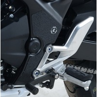 R&G Boot Guard kits are available for a large range of bike styles and brands, with new applications released regularly. The unique R&G texture was specifically designed to be durable, providing the rider with a buffer between his boot on the exposed areas of the swingarm which can (on occasion) come into contact with each other during cornering causing wear and unwanted damage to the swingarm or boots (both expensive to fix!). Each Boot Guard kit is supplied with precision pre-cut adhesive pieces, designed to fit the intended bike, typically in either 2 or 4 pieces depending on the shape of the swingarm. The high-strength adhesive backing ensures a highly durable product that will stay exactly where you put it, as well as not affecting or damaging paintwork. This R&G Boot Guard kit has been specially designed for the Honda CBR300R '14-. Please note that this is a frame protection kit only. Please note: R&G Boot Guards now come with a 25mm diameter stick-on emblem. Made in the UK.