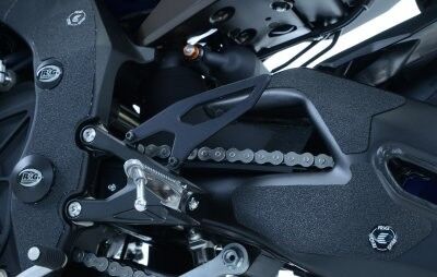 R&G Boot Guard kits are available for a large range of bike styles and brands, with new applications released regularly. The unique R&G texture was specifically designed to be durable, providing the rider with a buffer between his boot on the exposed areas of the swingarm which can (on occasion) come into contact with each other during cornering causing wear and unwanted damage to the swingarm or boots (both expensive to fix!). Each Boot Guard kit is supplied with precision pre-cut adhesive pieces, designed to fit the intended bike, typically in either 2 or 4 pieces depending on the shape of the swingarm. The high-strength adhesive backing ensures a highly durable product that will stay exactly where you put it, as well as not affecting or damaging paintwork. Please note: R&G Boot Guards now come with a 25mm diameter stick-on emblem. This Boot Guard kit has been specially designed for the Yamaha YZF-R1/R1M '15-  models. Made in the UK.