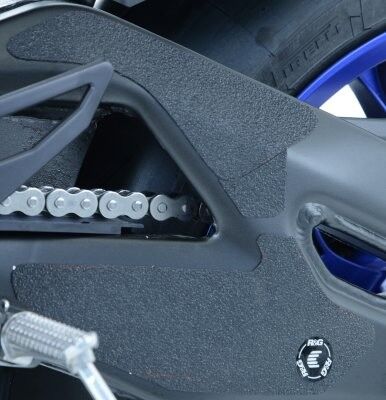 R&G Boot Guard kits are available for a large range of bike styles and brands, with new applications released regularly. The unique R&G texture was specifically designed to be durable, providing the rider with a buffer between his boot on the exposed areas of the swingarm which can (on occasion) come into contact with each other during cornering causing wear and unwanted damage to the swingarm or boots (both expensive to fix!). Each Boot Guard kit is supplied with precision pre-cut adhesive pieces, designed to fit the intended bike, typically in either 2 or 4 pieces depending on the shape of the swingarm. The high-strength adhesive backing ensures a highly durable product that will stay exactly where you put it, as well as not affecting or damaging paintwork. Please note: R&G Boot Guards now come with a 25mm diameter stick-on emblem. This Boot Guard kit has been specially designed for the Yamaha YZF-R1/R1M '15-  models. Made in the UK.