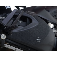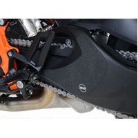 R&G Boot Guard kits are available for a large range of bike styles and brands, with new applications released regularly. The unique R&G texture was specifically designed to be durable, providing the rider with a buffer between their boot and the exposed areas of the swingarm which can (on occasion) come into contact with each other during cornering causing wear and unwanted damage to the swingarm or boots (both expensive to fix!). Each Boot Guard kit is supplied with precision pre-cut adhesive pieces, designed to fit the intended bike, typically in either 2 or 4 pieces depending on the shape of the swingarm. The high-strength adhesive backing ensures a highly durable product that will stay exactly where you put it, as well as not affecting or damaging paintwork. This 1pcs Boot Guard kit has been specially designed for the KTM 1290 Superduke GT '16- '24 model. Installing to the left hand side of the swingarm, protecting it from scratches and unmarked scuff marks. Please note: R&G Boot Guards now come with a 25mm diameter stick-on emblem. Made in the UK.