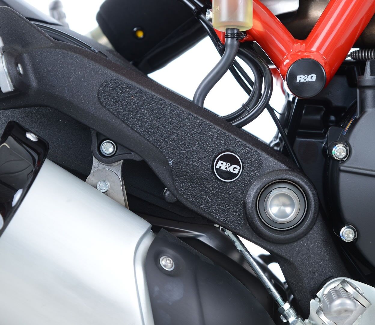 R&G Boot Guard kits are available for a large range of bike styles and brands, with new applications released regularly. The unique R&G texture was specifically designed to be durable, providing the rider with a buffer between his boot on the exposed areas of the swingarm which can (on occasion) come into contact with each other during cornering causing wear and unwanted damage to the swingarm or boots (both expensive to fix!). Each Boot Guard kit is supplied with precision pre-cut adhesive pieces, designed to fit the intended bike, typically in either 2 or 4 pieces depending on the shape of the swingarm. The high-strength adhesive backing ensures a highly durable product that will stay exactly where you put it, as well as not affecting or damaging paintwork. This 2pcs Boot Guard kit has been specially designed for the Ducati Scrambler '15- and Ducati Monster 797 '17-. Please note: R&G Boot Guards now come with a 25mm diameter stick-on emblem. Made in the UK.