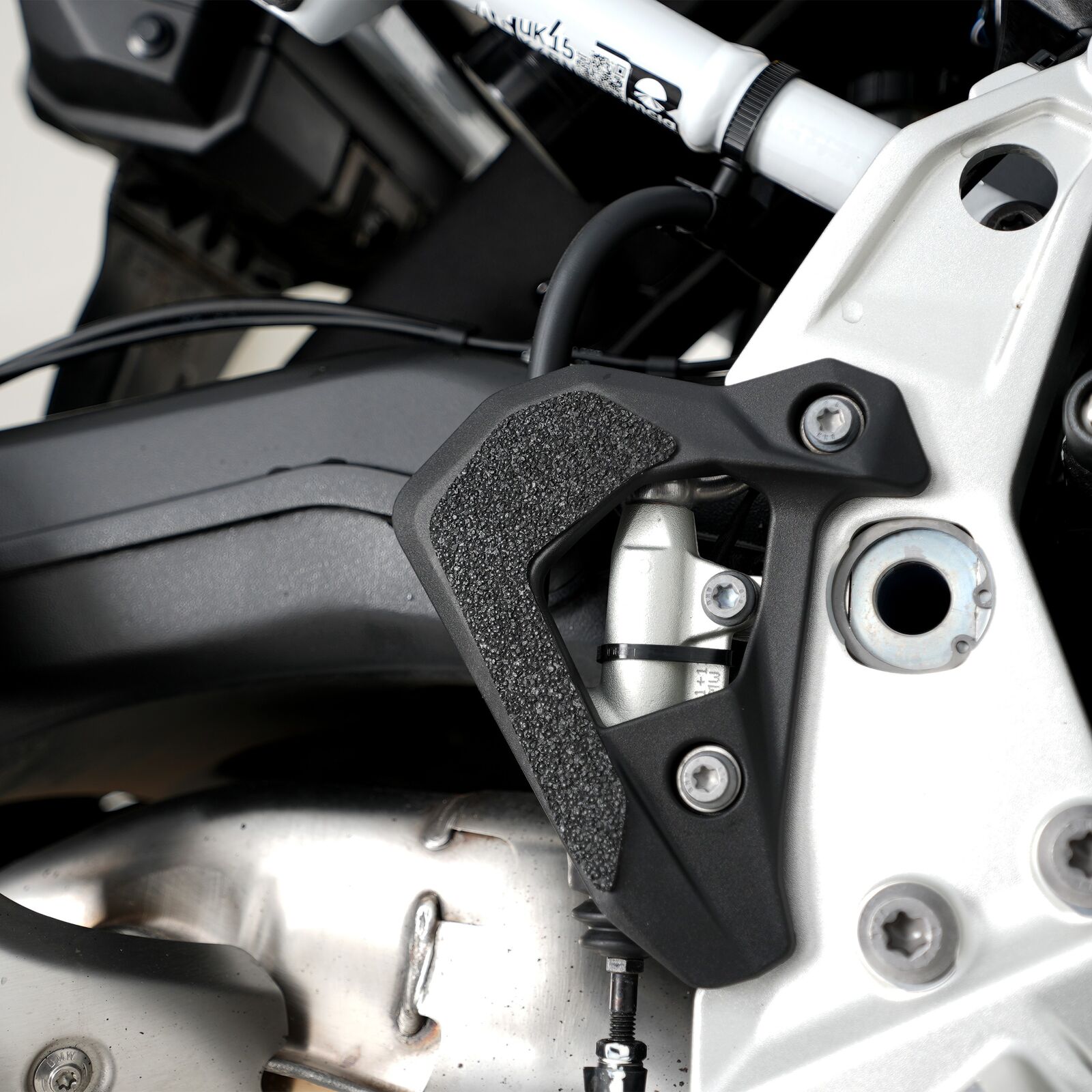 R&G Boot Guard kits are available for a large range of bike styles and brands, with new applications released regularly. The unique R&G texture was specifically designed to be durable, providing the rider with a buffer between his boot on the exposed areas of the swingarm which can (on occasion) come into contact with each other during cornering causing wear and unwanted damage to the swingarm or boots (both expensive to fix!). Each Boot Guard kit is supplied with precision pre-cut adhesive pieces, designed to fit the intended bike, typically in either 2 or 4 pieces depending on the shape of the swingarm. The high-strength adhesive backing ensures a highly durable product that will stay exactly where you put it, as well as not affecting or damaging paintwork. Please note: R&G Boot Guards now come with a 25mm diameter stick-on emblem. This 2-piece Boot Guard kit has been specially designed for the BMW F800GS '24-/ F750GS / F850GS '18-/ F850GSA 19-, F900GS '24- models.