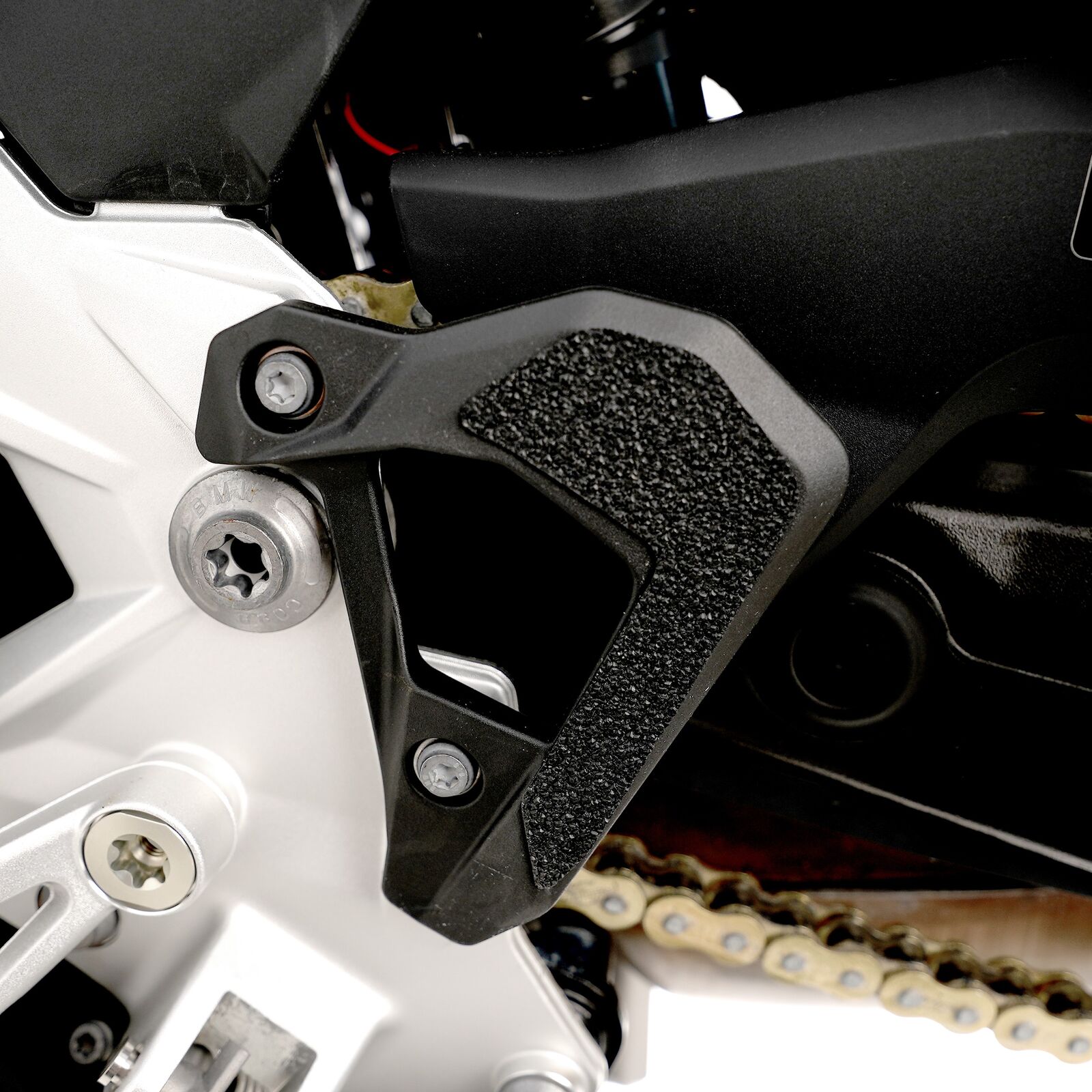 R&G Boot Guard kits are available for a large range of bike styles and brands, with new applications released regularly. The unique R&G texture was specifically designed to be durable, providing the rider with a buffer between his boot on the exposed areas of the swingarm which can (on occasion) come into contact with each other during cornering causing wear and unwanted damage to the swingarm or boots (both expensive to fix!). Each Boot Guard kit is supplied with precision pre-cut adhesive pieces, designed to fit the intended bike, typically in either 2 or 4 pieces depending on the shape of the swingarm. The high-strength adhesive backing ensures a highly durable product that will stay exactly where you put it, as well as not affecting or damaging paintwork. Please note: R&G Boot Guards now come with a 25mm diameter stick-on emblem. This 2-piece Boot Guard kit has been specially designed for the BMW F800GS '24-/ F750GS / F850GS '18-/ F850GSA 19-, F900GS '24- models.