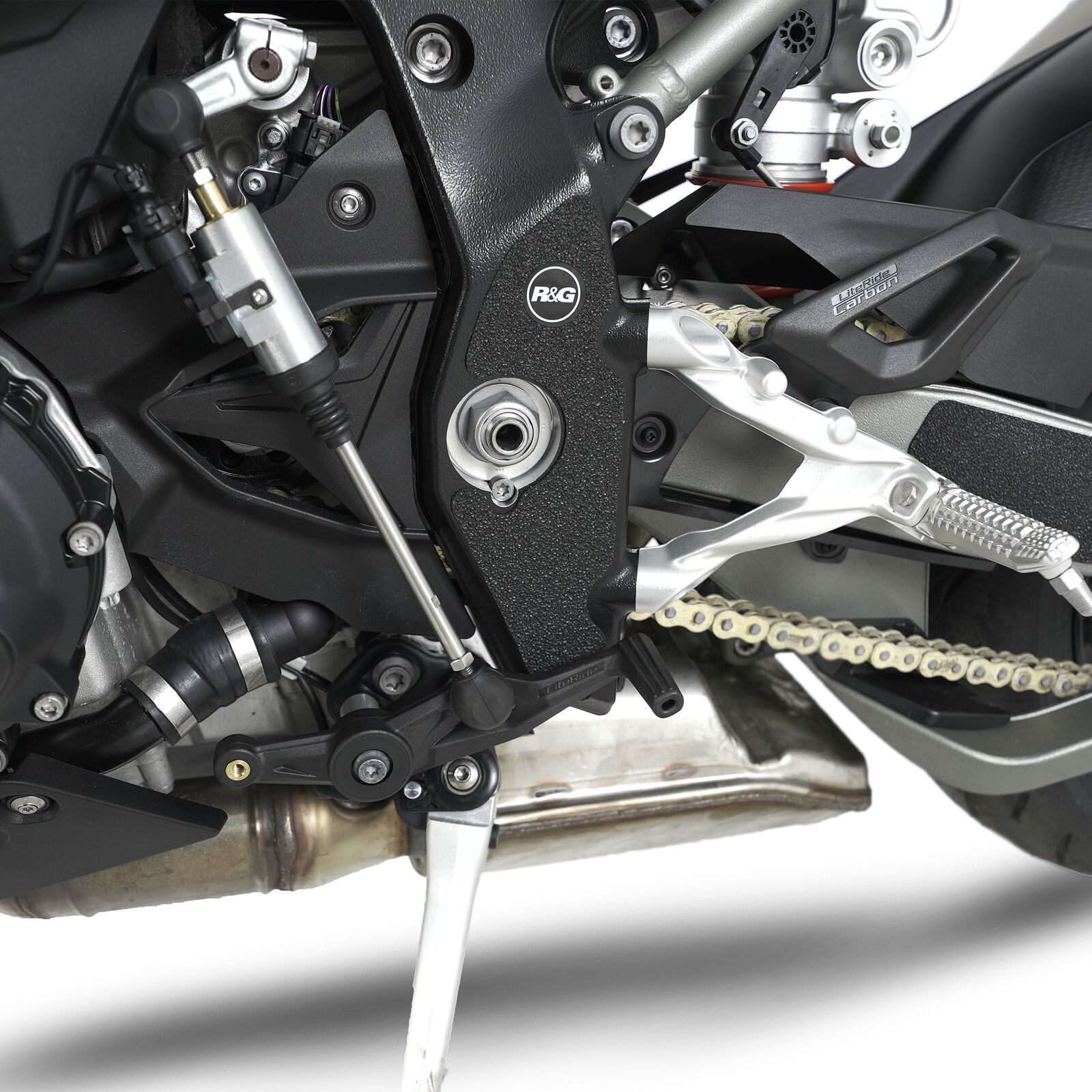 R&G Boot Guard kits are available for a large range of bike styles and brands, with new applications released regularly. The unique R&G texture was specifically designed to be durable, providing the rider with a buffer between his boot on the exposed areas of the swingarm which can (on occasion) come into contact with each other during cornering causing wear and unwanted damage to the swingarm or boots (both expensive to fix!). Each Boot Guard kit is supplied with precision pre-cut adhesive pieces, designed to fit the intended bike, typically in either 2 or 4 pieces depending on the shape of the swingarm. The high-strength adhesive backing ensures a highly durable product that will stay exactly where you put it, as well as not affecting or damaging paintwork. R&G Boot Guard kits are available in black or ultra-clear finishes to blend into your bike’s paintwork. Please note: R&G Boot Guards now come with a 25mm diameter stick-on emblem. This 3-piece Boot Guard kit has been specially designed for the BMW M1000RR '21- '24 & S1000RR '23-  & M1000R '23- '24 models.