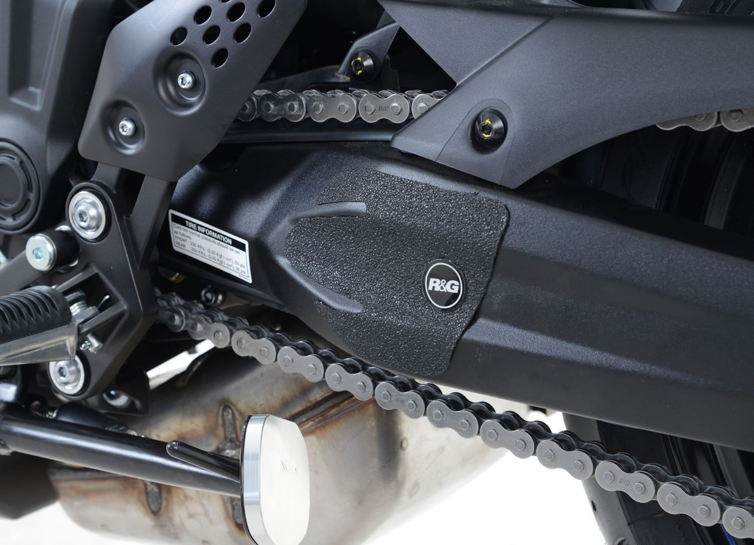 R&G Boot Guard kits are available for a large range of bike styles and brands, with new applications released regularly. The unique R&G texture was specifically designed to be durable, providing the rider with a buffer between his boot on the exposed areas of the swingarm which can (on occasion) come into contact with each other during cornering causing wear and unwanted damage to the swingarm or boots (both expensive to fix!). Each Boot Guard kit is supplied with precision pre-cut adhesive pieces, designed to fit the intended bike, typically in either 2 or 4 pieces depending on the shape of the swingarm. The high-strength adhesive backing ensures a highly durable product that will stay exactly where you put it, as well as not affecting or damaging paintwork. Please note: R&G Boot Guards now come with a 25mm diameter stick-on emblem. This 2-piece Boot Guard kit has been specially designed for the Yamaha Tracer 700 '16- (FJ-07) & Tracer 7 (GT) '21-. Please note: Frame plugs ARE NOT included, but are available separately. Made in the UK.