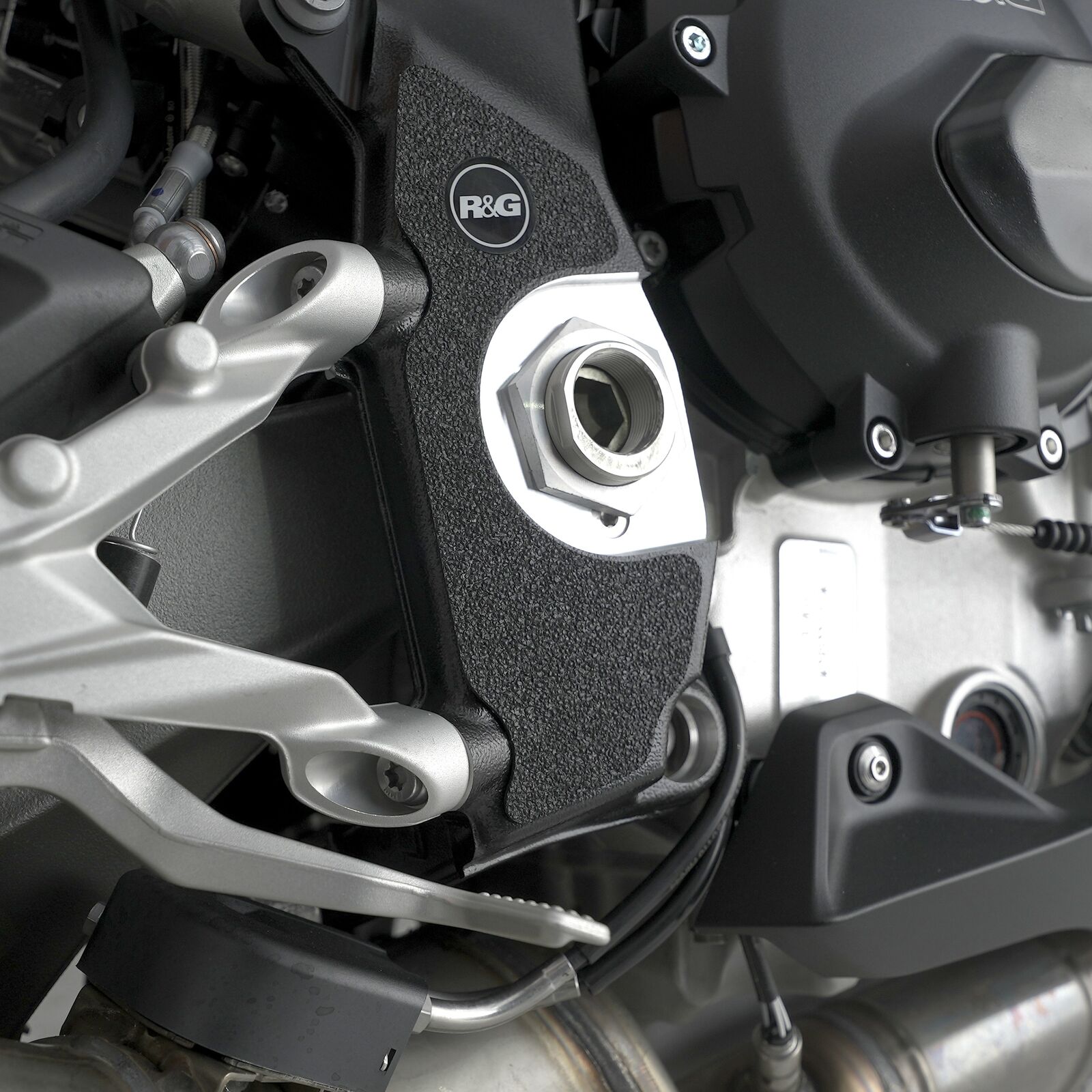 R&G Boot Guard kits are available for a large range of bike styles and brands, with new applications released regularly. The unique R&G texture was specifically designed to be durable, providing the rider with a buffer between his boot on the exposed areas of the swingarm which can (on occasion) come into contact with each other during cornering causing wear and unwanted damage to the swingarm or boots (both expensive to fix!). Each Boot Guard kit is supplied with precision pre-cut adhesive pieces, designed to fit the intended bike, typically in either 2 or 4 pieces depending on the shape of the swingarm. The high-strength adhesive backing ensures a highly durable product that will stay exactly where you put it, as well as not affecting or damaging paintwork. R&G Boot Guard kits are available in black or ultra-clear finishes to blend into your bike’s paintwork. Please note: R&G Boot Guards now come with a 25mm diameter stick-on emblem. This 3-piece Boot Guard kit has been specially designed for the BMW M1000RR '21- '24 & S1000RR '23-  & M1000R '23- '24 models.